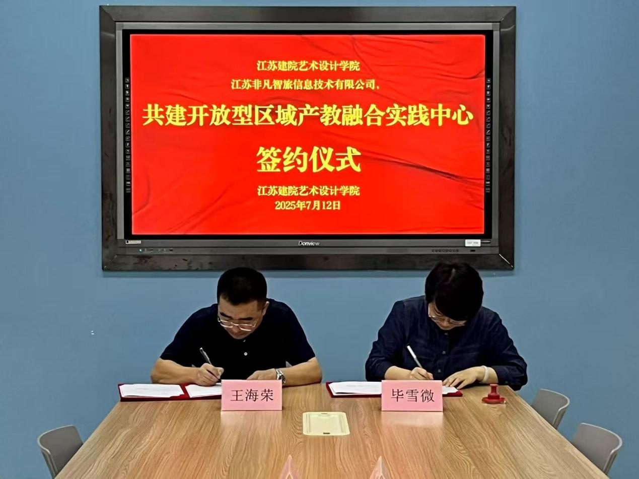 2025年7月12日,为深入贯彻落实产教融合发展战略,推动教育链、人才链与产业链、创新链有机衔接。我院与江苏非凡智旅信息技术有限公司(以下简称非凡智旅)在学院会议室成功举行共建开放型区域产教融合实践中心签约仪式。党总支书记方升、副院长毕雪微(主持工作)、副院长王子夺及各专业主任,与非凡智旅总经理王海荣、副总经理王文玉等双方代表共同出席活动,标志着校企合作在深化产教融合、服务区域发展方面迈出坚实步伐。
